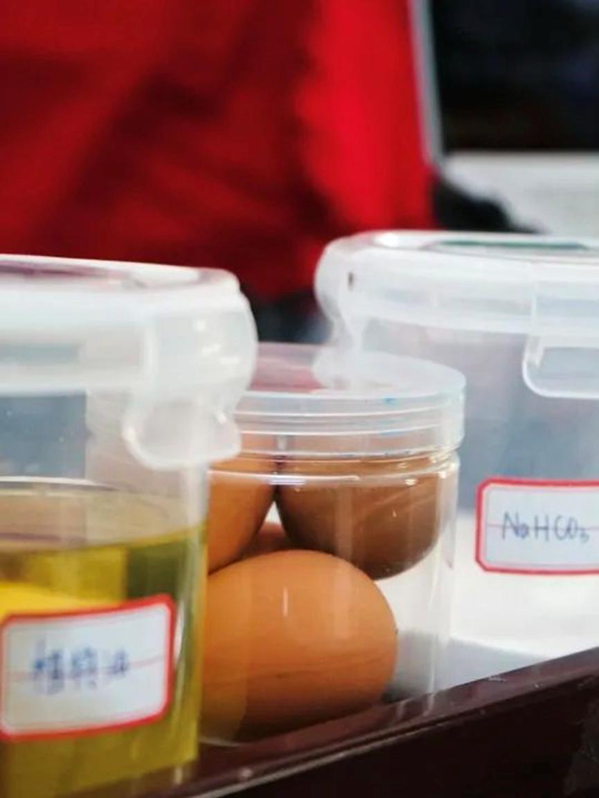 趣味實(shí)驗(yàn)“會(huì)變色的火山蛋”由志愿者唐艷秋同學(xué)展示。唐艷秋同學(xué)將小蘇打和顏料混合均勻,置于面板上。將雞蛋置于面板上來(lái)回滾動(dòng),直到雞蛋上沾滿顏料。隨后,拿一個(gè)塑料杯,將醋倒入塑料杯中。輕輕將雞蛋放入上述塑料杯中,觀察到產(chǎn)生氣泡的現(xiàn)象。此實(shí)驗(yàn)讓小朋友們對(duì)白醋與小蘇打的化學(xué)反應(yīng)有了更深的了解。