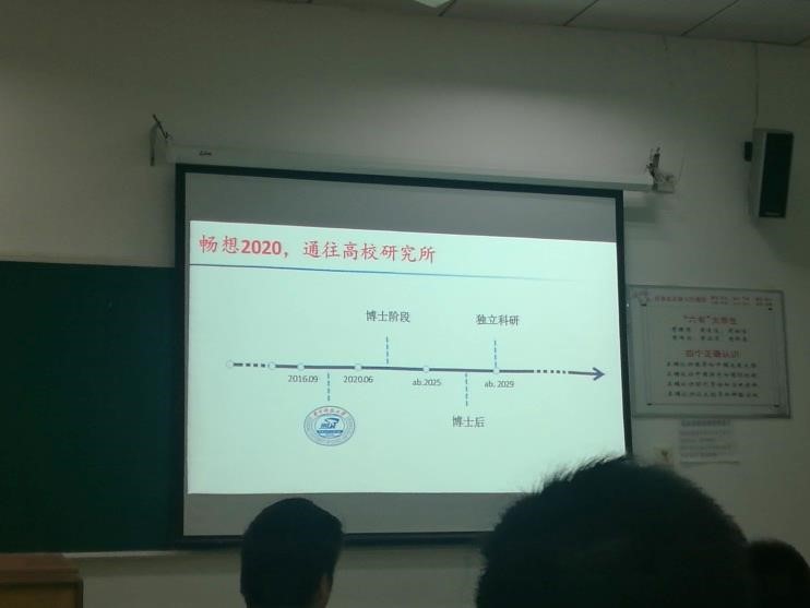 在回顧和分享過(guò)去一年中的經(jīng)歷后,班會(huì)的討論轉(zhuǎn)向預(yù)定的主題“暢想2020”。在經(jīng)歷了一年的積淀后,同學(xué)們對(duì)于未來(lái)的生涯思考和規(guī)劃的認(rèn)知逐漸清晰,并開(kāi)始具體計(jì)劃接下來(lái)三年的大學(xué)生活。不少同學(xué)表示,通過(guò)過(guò)去一年的專業(yè)學(xué)習(xí)和到知名高校院所學(xué)習(xí)交流,再加上學(xué)院老師、班主任等的引導(dǎo),激發(fā)了自己對(duì)畢業(yè)后出國(guó)深造的興趣和熱情,并已經(jīng)計(jì)劃具體的準(zhǔn)備。張玉龍同學(xué)分享了自己所了解的世界名校,如常青藤大學(xué)招收研究生情況,尤其是在專業(yè)成績(jī)和英語(yǔ)方面的具體要求。他表示自己希望2020年能申請(qǐng)到這些名校去繼續(xù)深造,并計(jì)劃接下來(lái)從專業(yè)課程、英語(yǔ)考級(jí)、實(shí)驗(yàn)室科研訓(xùn)練等方面開(kāi)始著手準(zhǔn)備。