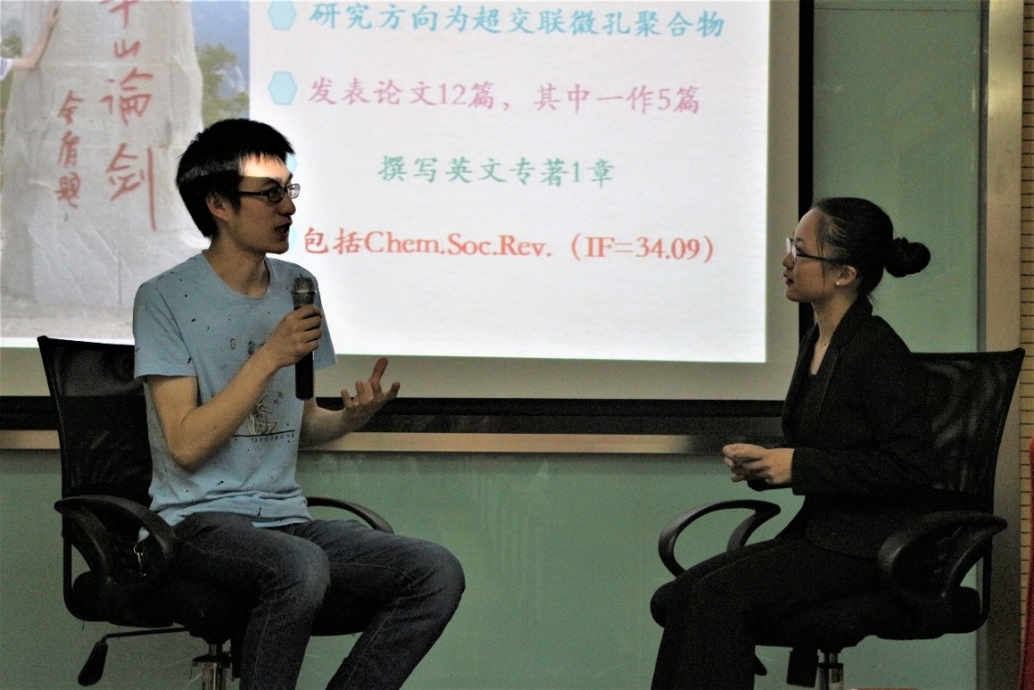 首先上場的是17屆博士畢業(yè)生譚良驍,他是08級化學(xué)工程與工藝專業(yè)本科生,12年保研進入譚必恩教授課題組攻讀博士學(xué)位,研究方向為超交聯(lián)微孔聚合物。作為學(xué)習(xí)科研方面的代表,師兄可謂是碩果累累,讀博期間在Chemical society reviews(IF=34.09)、Polymer、Macromolecular rapid communication等期刊上發(fā)表論文12篇,其中一作5篇,并撰寫英文專著1章。