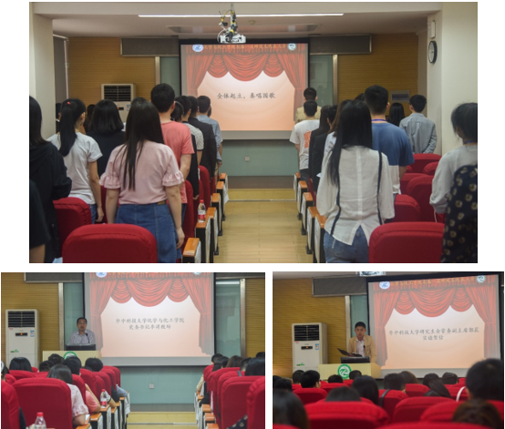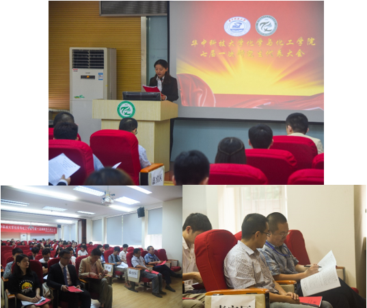 大會在激昂的《義勇軍進行曲》中開幕,全體成員莊嚴(yán)肅穆地起立并奏唱國歌。首先,化學(xué)與化工學(xué)院黨委書記李濤老師致大會開幕詞。他提出了此次大會的三項主要任務(wù):第一,聽取第六屆研究生會的工作報告;第二,全體代表共同聽取、討論華中科技大學(xué)化學(xué)與化工學(xué)院七屆一次研究生代表大會提案;三是全體代表投票選舉出華中科技大學(xué)第七次研究生代表大會化學(xué)與化工學(xué)院代表團代表。接著華中科技大學(xué)研究生會常務(wù)副主席郭晨致賀詞。