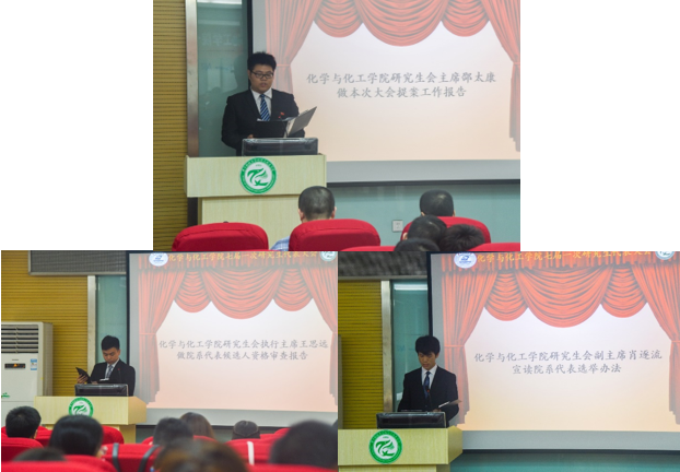 接著,化學(xué)與化工學(xué)院研究生會主席邵太康作了《華中科技大學(xué)化學(xué)與化工學(xué)院七屆一次研究生代表大會提案工作報告》,化學(xué)與化工學(xué)院研究生會執(zhí)行主席王思遠(yuǎn)作《華中科技大學(xué)第七次研究生代表大會化學(xué)與化工學(xué)院代表候選人資格審查報告》,化學(xué)與化工學(xué)院研究生會副主席肖逐流作《華中科技大學(xué)第七次研究生代表大會化學(xué)與化工學(xué)院代表選舉辦法》。表明希望各位代表都能本著嚴(yán)肅、認(rèn)真、負(fù)責(zé)的精神參加大會的各項活動,將此次會議開成一個“團結(jié)、民主、奮進、求實”的盛會。