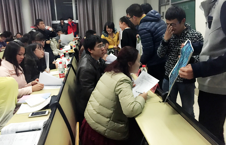 (通訊員:劉琦)12月4日晚,化學與化工學院2015級專業(yè)概論結課答辯會在西十二順利舉行。到場的嘉賓有化學系系主任、化學1501班教師班主任龔躍法老師,應用化學系系主任劉宏芳老師、化學工程與工藝系系主任周興平老師,應化1503班教師班主任廖榮臻老師、化學工程與工藝1501班周軍老師、化學工程與工藝1502班甘泉老師、化學與化工學院黨總支副書記吳疆鄂老師、輔導員劉琦老師以及各個班級的學生班主任。2015級化學、應化、化工專業(yè)6各班級近170名學生參加了本次答辯會,共分為20組,答辯會分為答辯與板報展示兩個部分,每個小組依序進行。