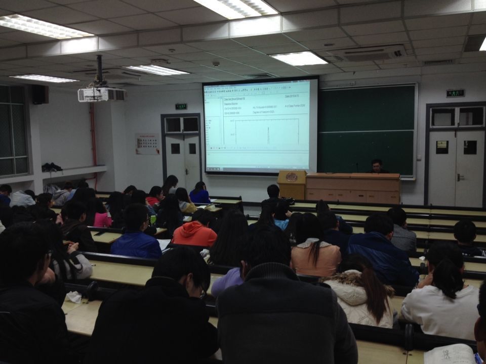 第一期活動涉及了研究生新生最關心的一些問題,同學們的熱情都比較高漲。吳俊同學首先給同學們介紹了文獻查閱技巧,看得出這些都是他在平時的學習過程中逐漸摸索掌握的,有多處常容易被忽略的小細節(jié)也進行了細致耐心的講解。隨后,他又向同學們介紹了作圖軟件origin、文獻管理工具endnote的一些使用技巧,對于這些化學專業(yè)常用的工具,無論巨細,他都為同學們做出了很好的介紹。最后,他著重為大家演示了作圖軟件origin的一些常用技巧,比如作圖、擬合、誤差棒等。在這個過程中,吳俊同學使用具體的數(shù)據(jù)實例一一為大家做出示范,原本預定一個小時結(jié)束的講解持續(xù)了近兩個小時。